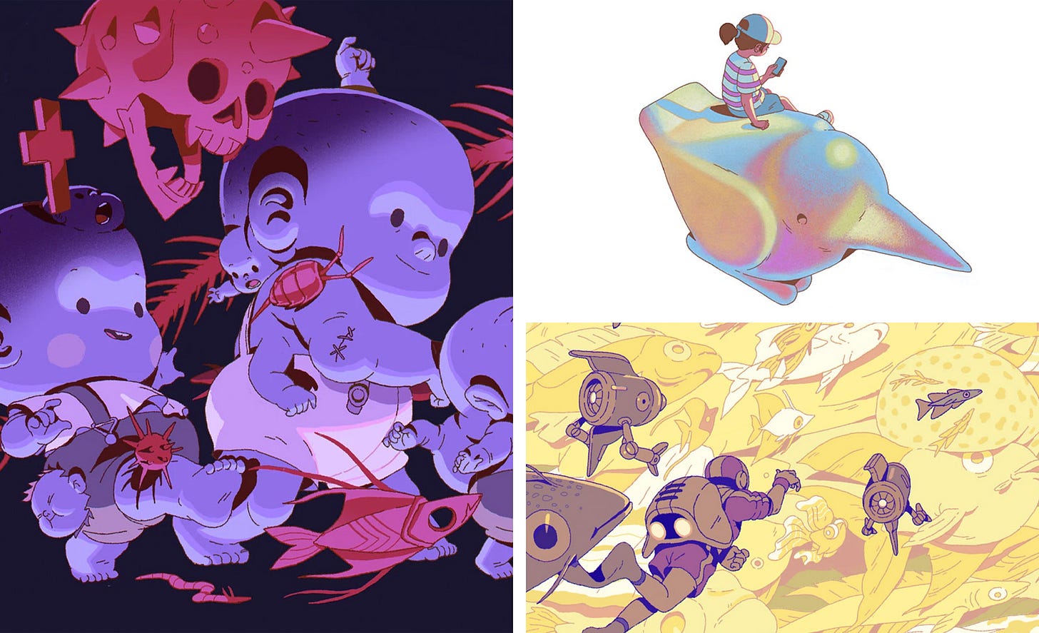 Gastón is one of those artists who inspires others to want to draw. And I think that’s because he conveys a very particular feeling: that of thoroughly enjoying what he does at every moment. The constant playfulness of his shapes, colours, and compositions, along with his sense of humor, is a delight for the senses. He’s more active on Instagram.