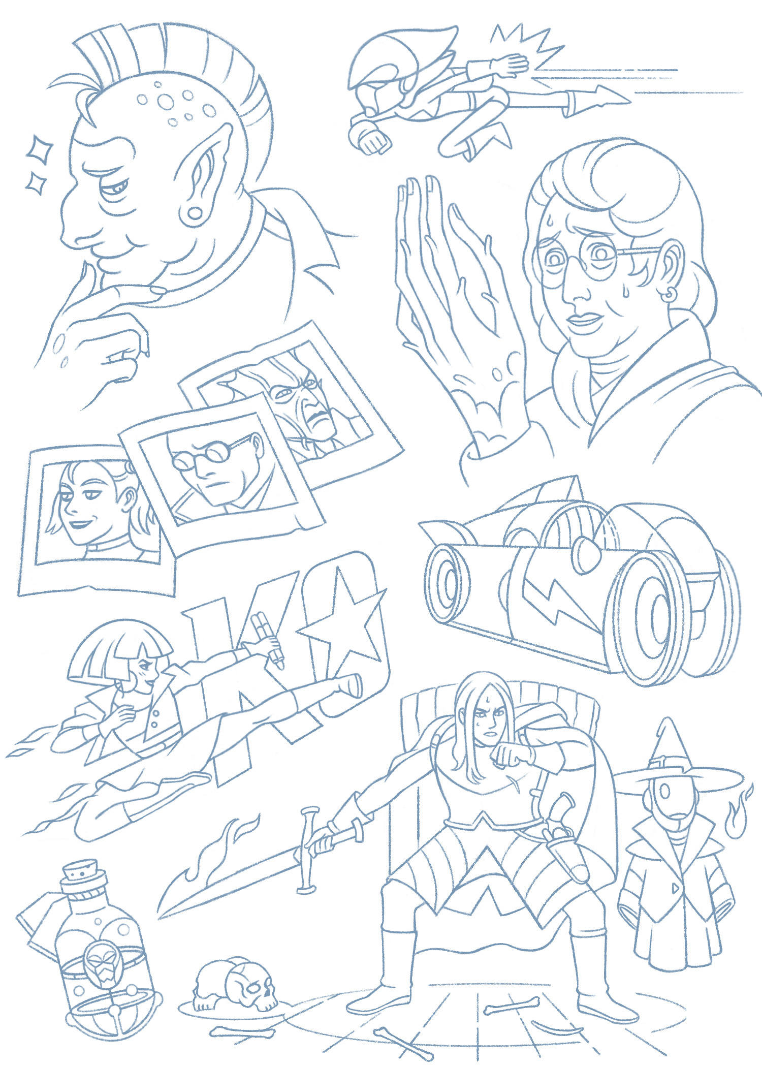 8 pages with sketches for commercial illustrations