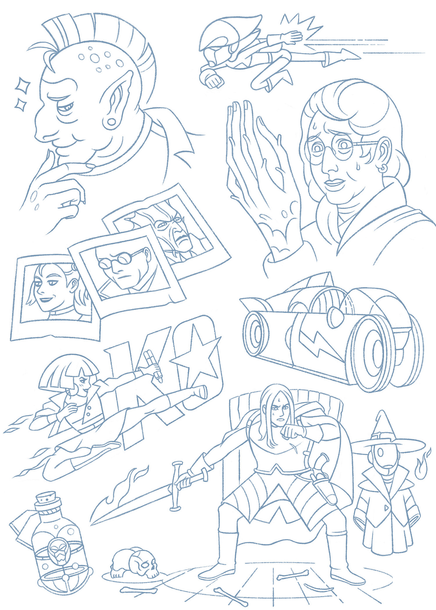 Starting this one with some recent sketches. 45 of the 60 pages of the sketchbook are ready, which will include (approx.):