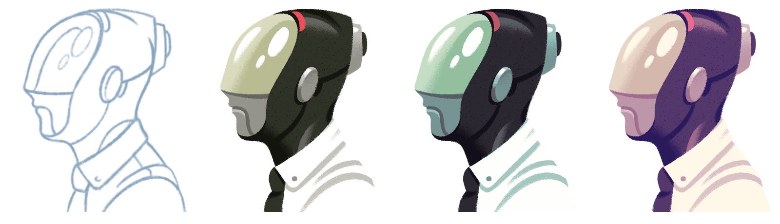 Colouring some of these sketches from time to time is always a good, quick exercise to try new palettes and/or finishes:
