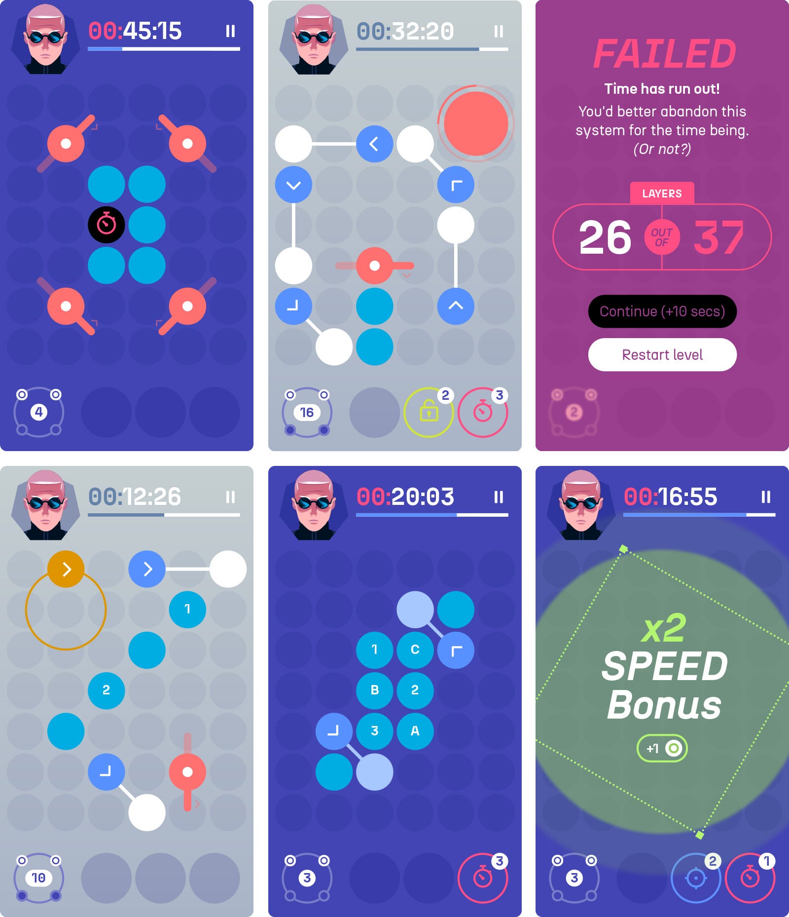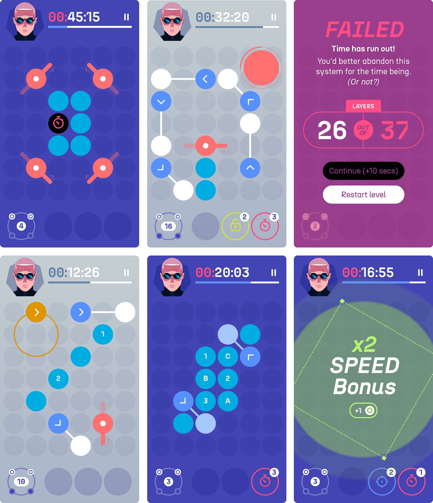 Every level was composed of multiple layers you had to solve by unlocking all the different micro-devices that they contained. So the complexity was not solving them like a puzzle, but getting to the final layer in a given time, generally pretty short. More about reaction and speed than cleverness.