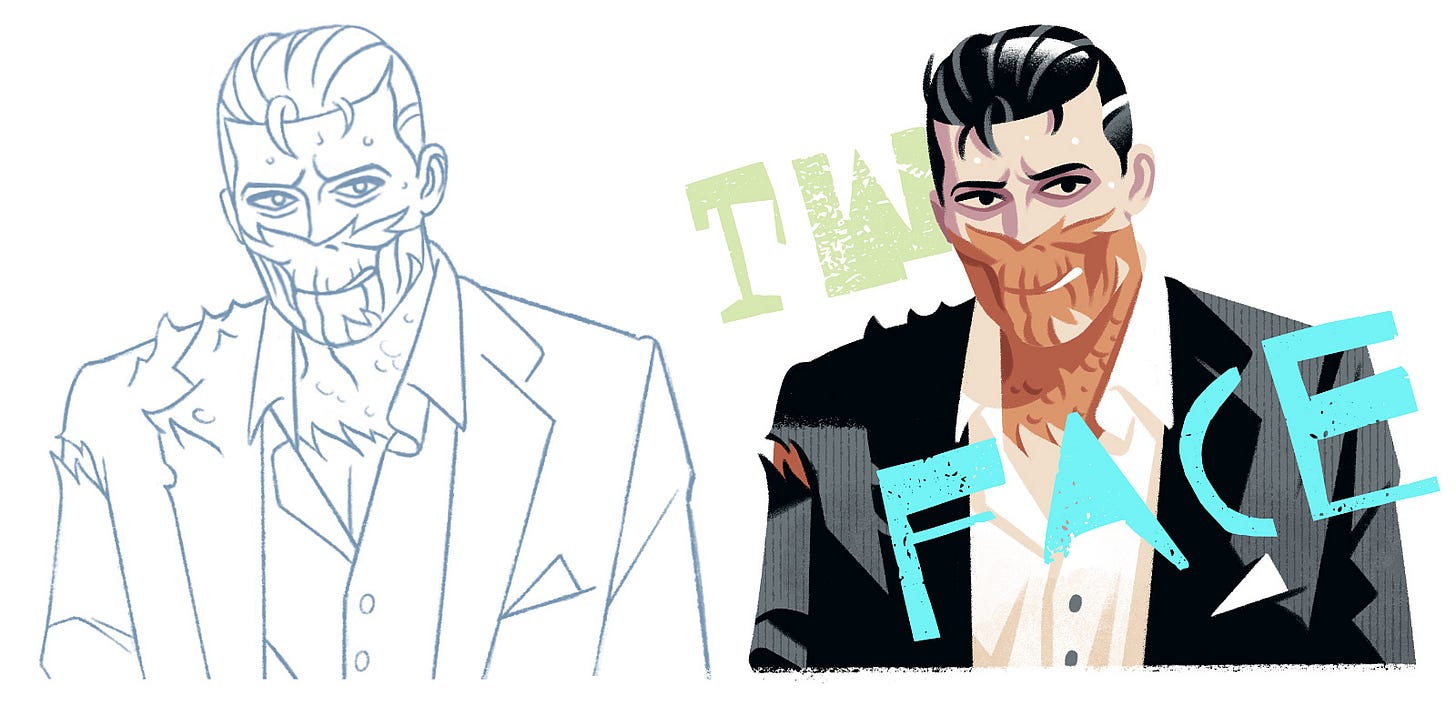When I started working on some villains, I realised that Two-Face is one of the least reinterpreted characters of the Batman universe. Other characters have had considerably different versions, but Two-Face seems to remain mostly untouched (even in the newest Caped Crusader animated show).